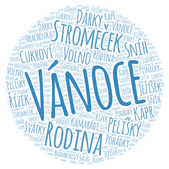 Jelikož jsme měli spojenou hodinu v osmé třídě, rozhodli jsme se, že vyzkoušíme slovní mraky. Jedná se o zajímavé grafické zpracování tématu pomocí klíčových slov nebo slovních spojení. Protože je prosinec, zvolili jsme téma Vánoce. Žáci měli do slovních mraků napsat veškerá slova, která je s těmito svátky napadnou. Aplikací je celá řada, ale zvolili jsme takovou, která zvládne i háčky a čárky - wordart.com. K práci nám stačila základní verze. Nejprve si žáci prostředí osahali a intuitivně se dali do práce. Spojili jsme angličtinu a češtinu. Vznikly tak dvě verze - anglická a česká. K práci přistoupili kreativně, obrázky jsme vyexportovali a můžete si je prohlédnout. Žáci si vyzkoušeli něco nového, co mohou dále jednoduše využít při zpracování dalších témat.